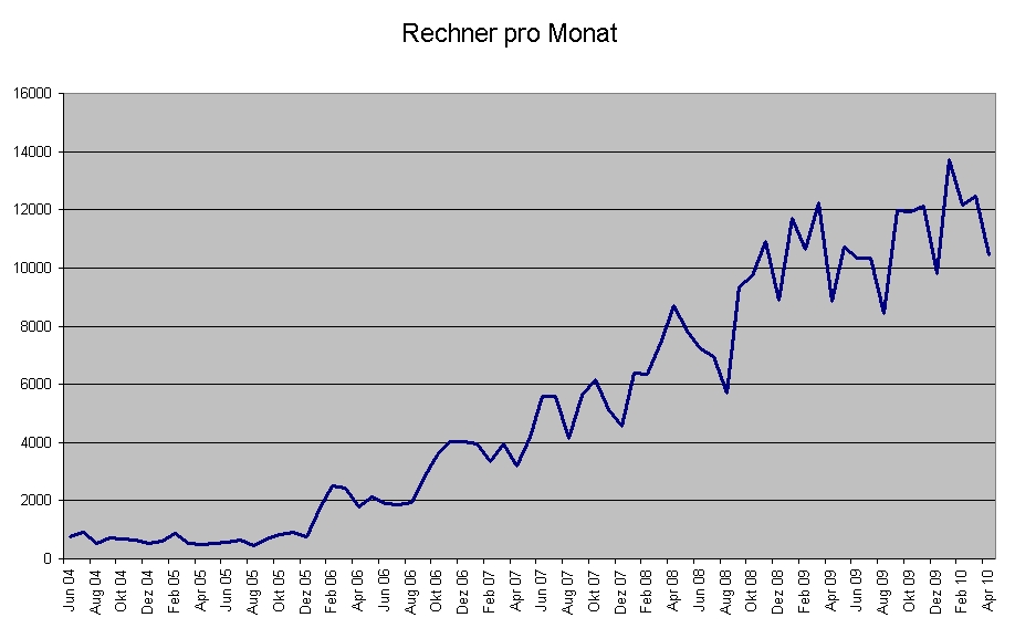 in zwei Tagen feiert http://fachlehrerseite.de seinen 6. Geburtstag. Am Samstag den 22.05.2004 um 23:48 Uhr wurde die Forensoftware von mir installiert. Das Forum ist seitdem enorm gewachsen. Zu Beginn hatten wir 33 Besucher am Tag und im letzten Monat waren es 716 Besucher täglich. Der Rekord liegt bei 978 Tagesbesuchern im Juli 2007. Weitere Zahlen will ich euch ersparen. :)