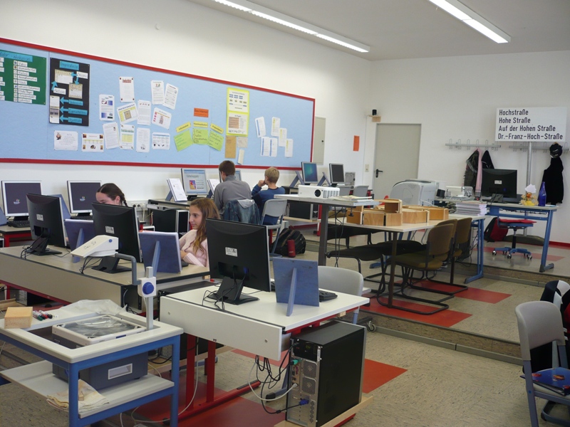 So habe ich alle Schüler im Blick, jeder Platz ist leicht zugänglich, denn ich muss nicht durch "die Gänge laufen". Einen großen Vorteil sehe ich auch darin, dass ich einem Schüler etwas erklären kann und trotdem den Rest gut im Blick habe. Das fehlt mir im U-Raum. Erkläre ich in den forderen Reihen etwas, machen die in den hinteren evtl. was sie wollen.