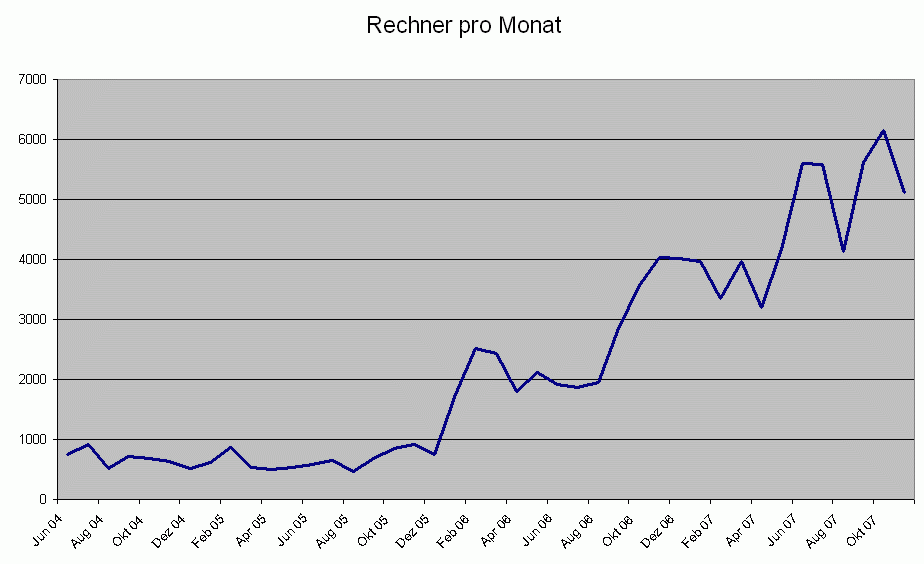 Für alle die das Wachstum interessiert hier noch eine Tabelle. Enthalten sind die Zahl der Rechner die das Fachlehrerforum besucht haben seit bestehen des Forums.