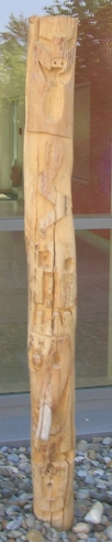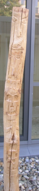Im Vorfeld haben wir uns mit den Begriffen Marterpfahl, Totempfahl und Wappenpfähle auseinandergesetzt und uns Fotos von fertigen Pfählen angesehen. Dann habe ich mit zwei 7. Klassen ungefähr 3 Monate an den Pfählen gearbeitet.